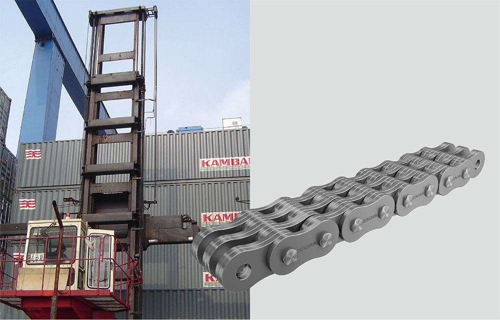 提升設備行業用鏈條主要應用于叉車、港口機械、立體停車庫及其它提升設備。