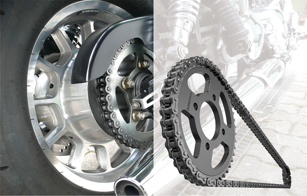 摩托車行業(yè)用鏈條主要有摩托車發(fā)動機用正時鏈條和摩托車后輪驅動用鏈條,摩托車驅動鏈條主要分為標準滾子鏈和密封圈鏈條。