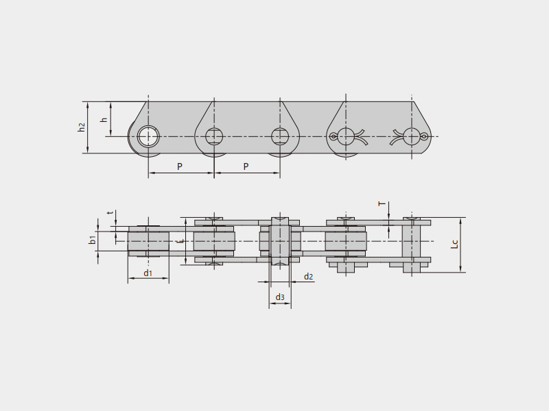 ● 英制(Z系列)輸送鏈符合BS標準,主要有Z型輸送鏈、ZE型輸送鏈、ZC型空心銷軸輸送鏈;